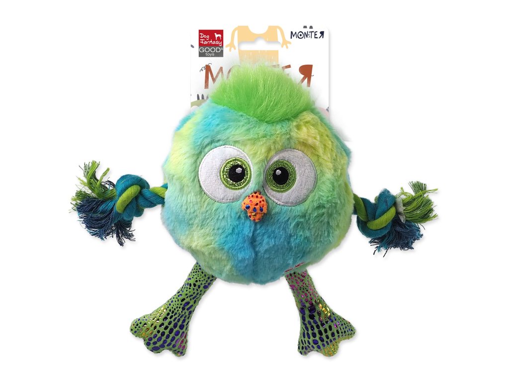 Hračka Dog Fantasy Monsters kuře pískací s provazy a uzly modré 15cm