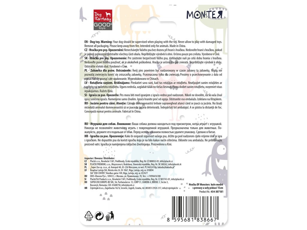 Nenechávejte Vašeho psa bez dozoru při hraní s hračkou. Nedovolte hraní s hračkou, pokud je jakkoli poškozena. Odstraňte všechny části obalu. Nepřibližujte výrobek k ohni. Určeno pouze pro zvířata.