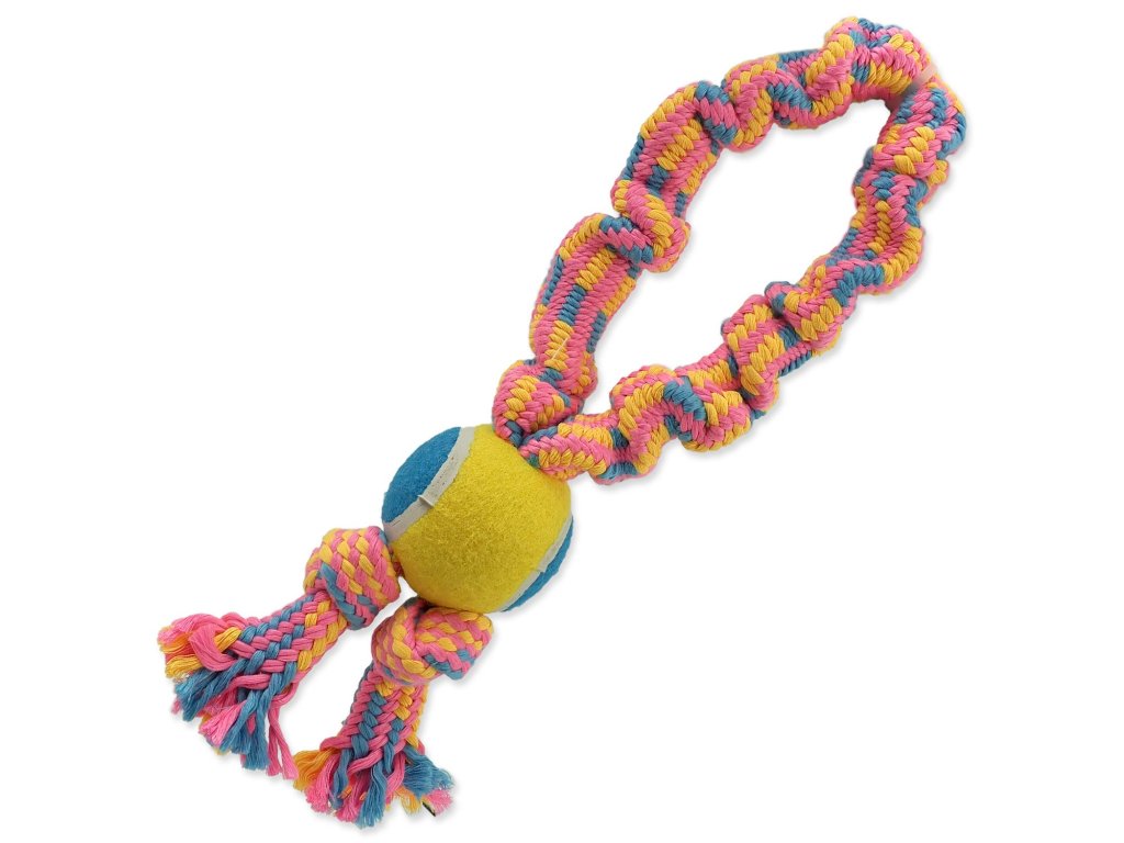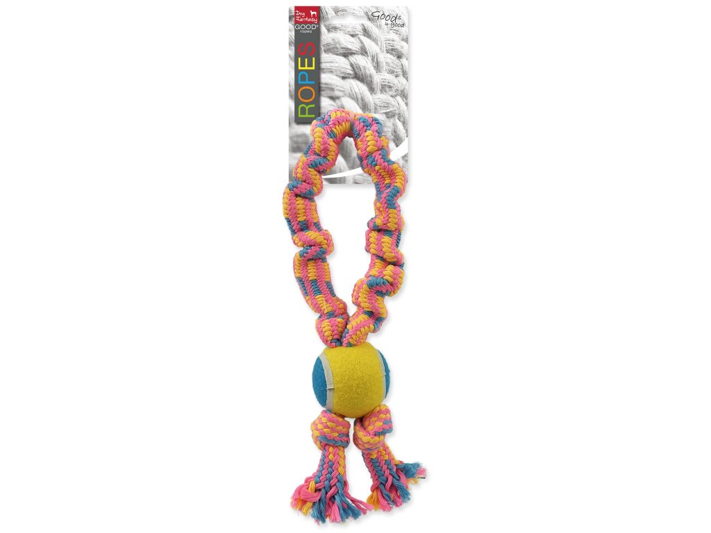 Hračka Dog Fantasy přetahovadlo s tenisákem barevný vzor 2, 2 knoty 32cm