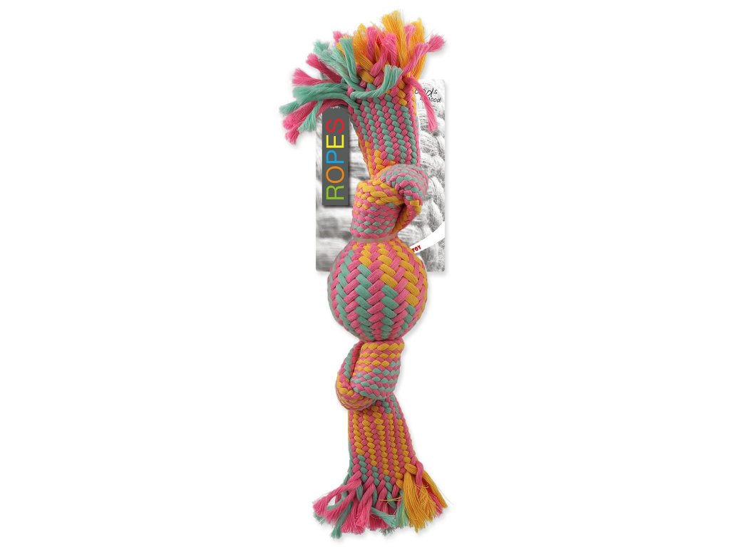 Hračka Dog Fantasy přethovadlo s míčkem barevný vzor 1, 2 knoty 40cm