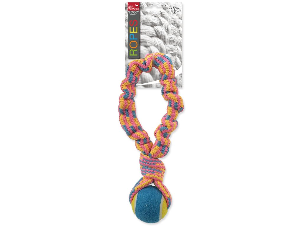 Hračka Dog Fantasy přethovadlo s tenisákem barevný vzor 2, 28cm