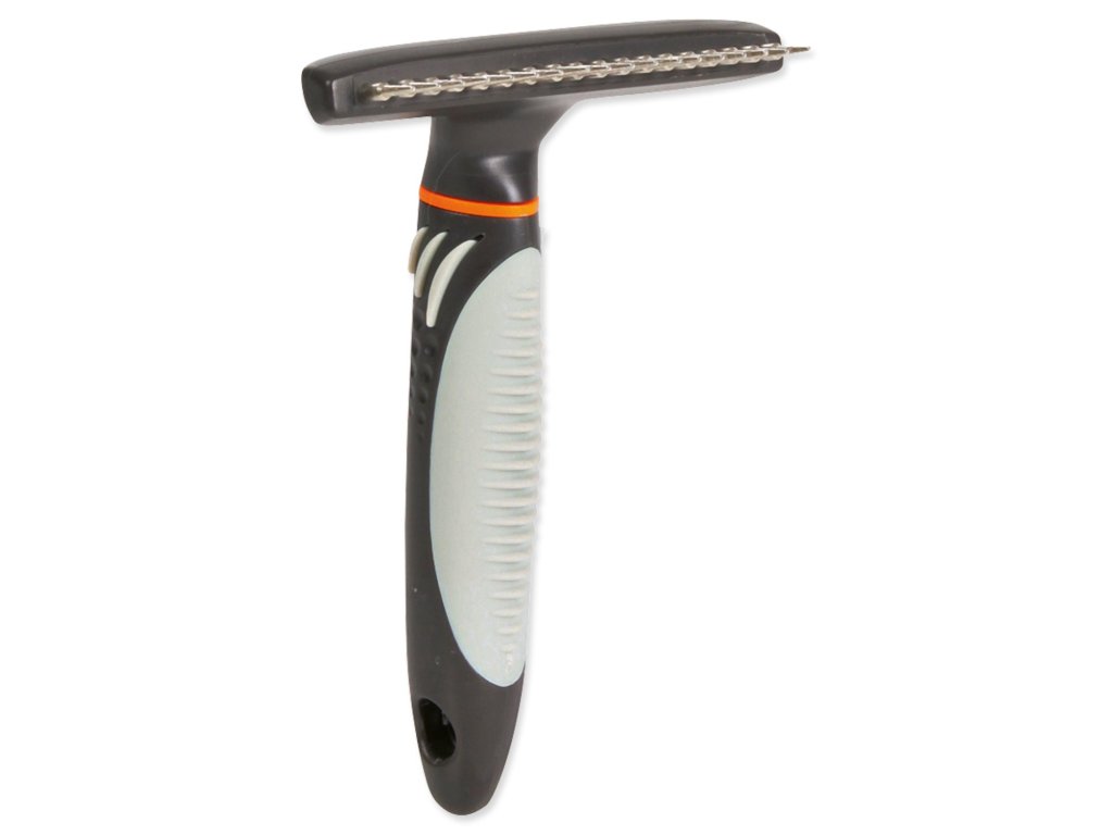 Hřeben pro psy s plastovou rukojetí s protiskluzovou gumou. Je vhodný pro krátkosrsté a drsnosrsté psy.