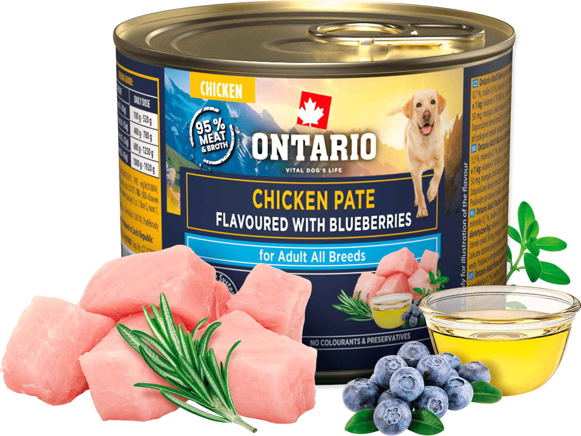 Konzerva Ontario Adult kuřecí pate s borůvkami