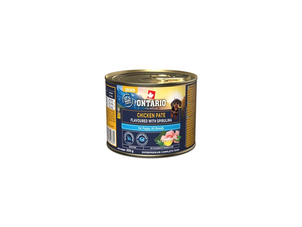 Konzerva Ontario Puppy kuřecí pate s příchutí spiruliny 200g