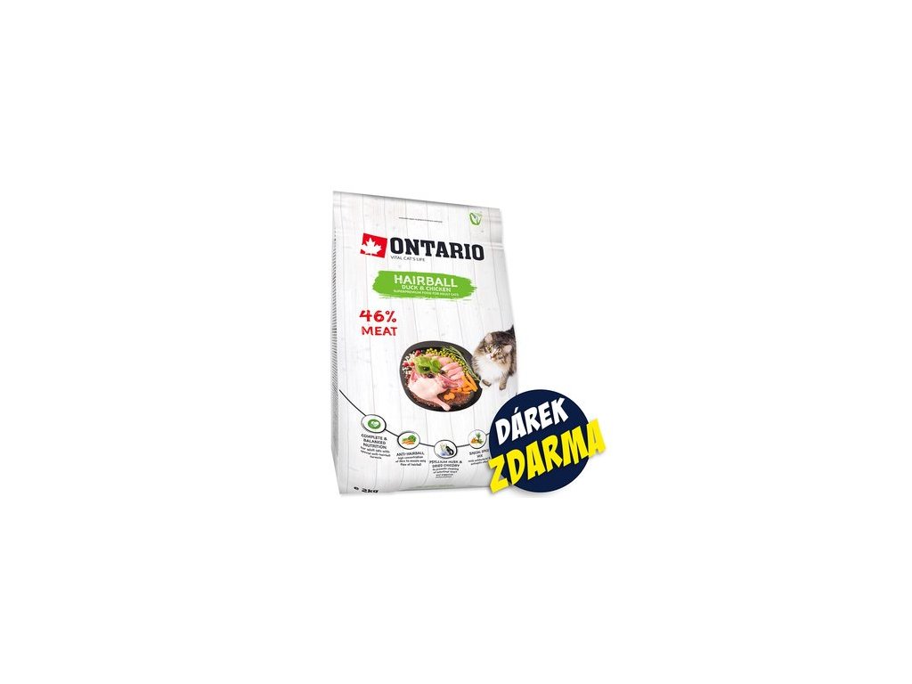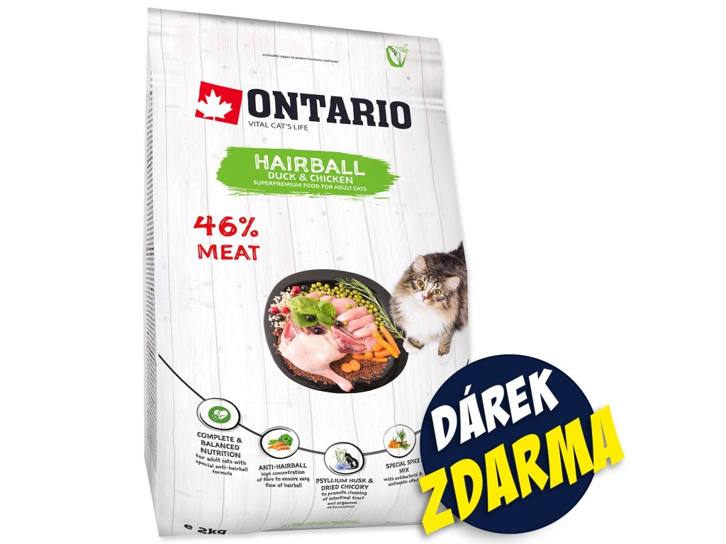Krmivo Ontario Cat Hairball 2kg + 4 kapsičky ZDARMA