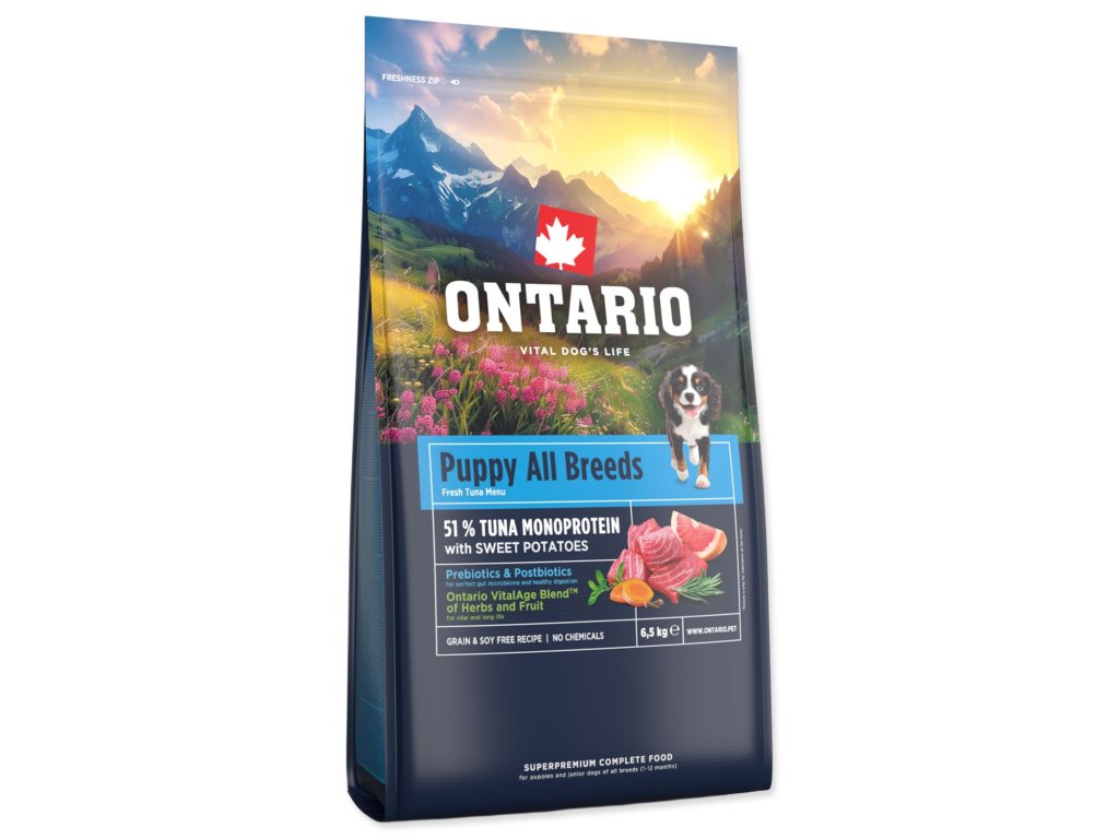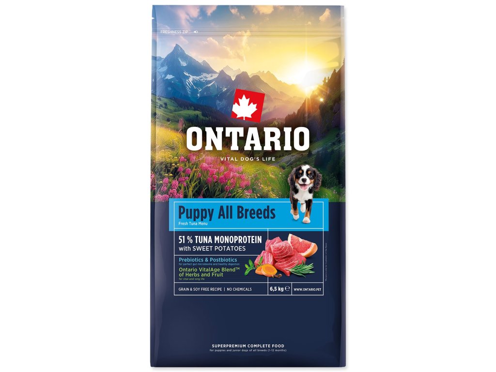 Krmivo Ontario Puppy & Junior All Breeds Monoprotein Tuna & Sweet Potatoes 6,5kg