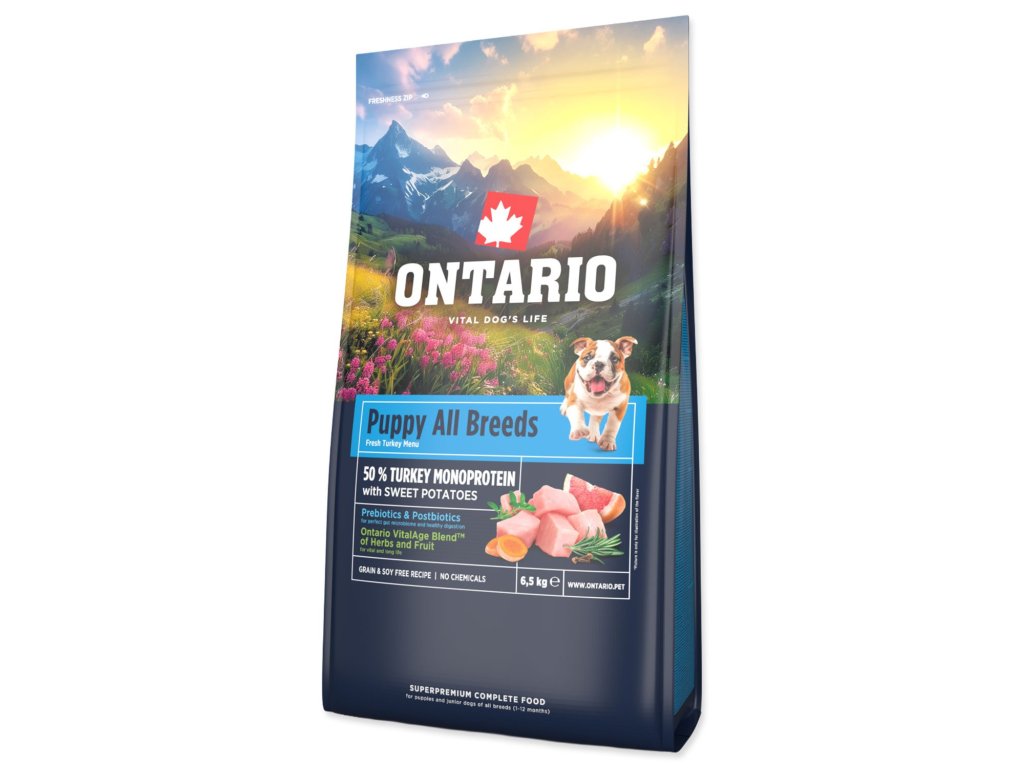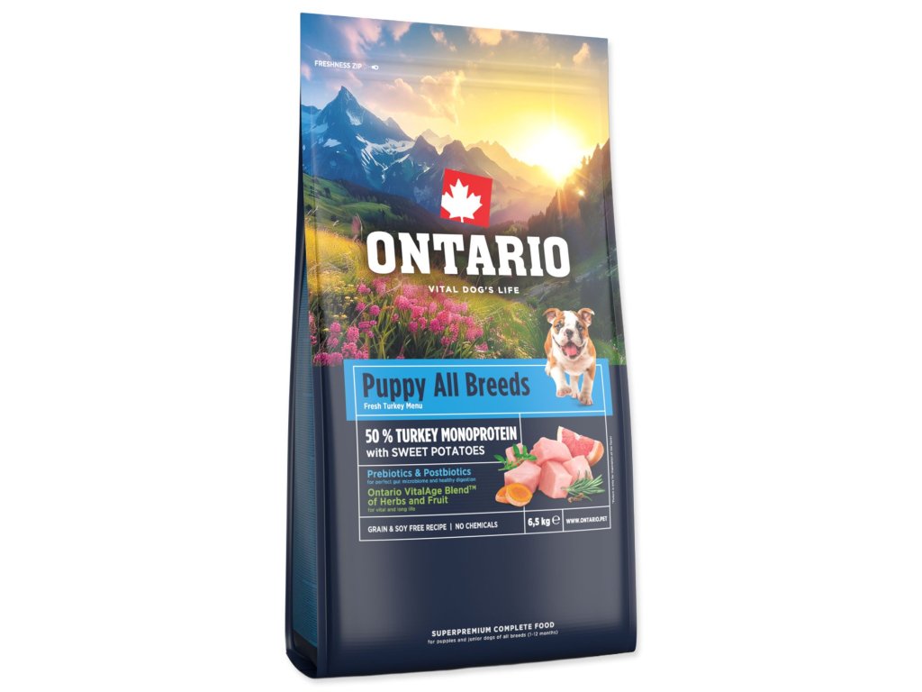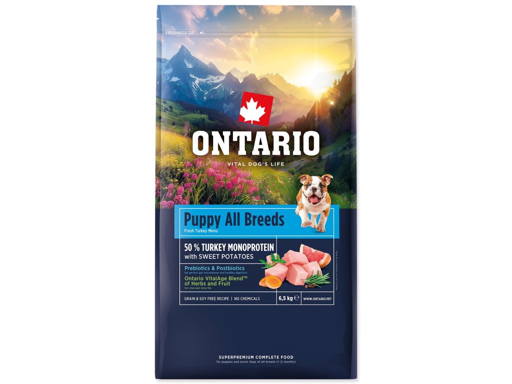 Krmivo Ontario Puppy & Junior All Breeds Monoprotein Turkey & Sweet Potatoes 6,5kg