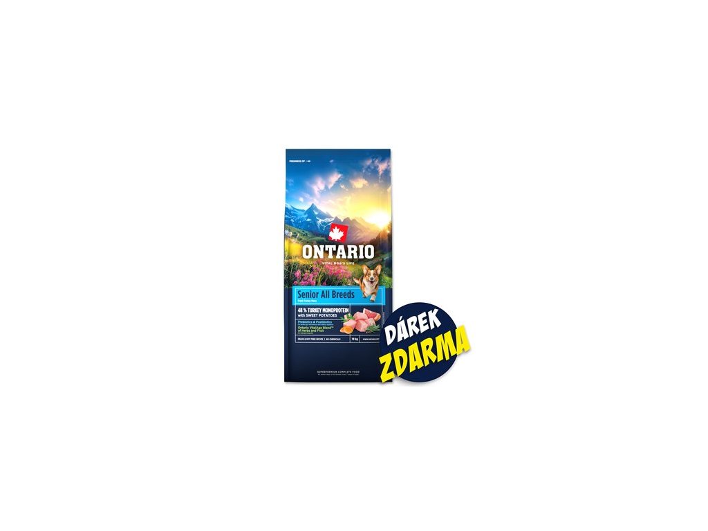 Krmivo Ontario Senior All Breeds Monoprotein Turkey 12kg + 3 konzervy 400g ZDARMA