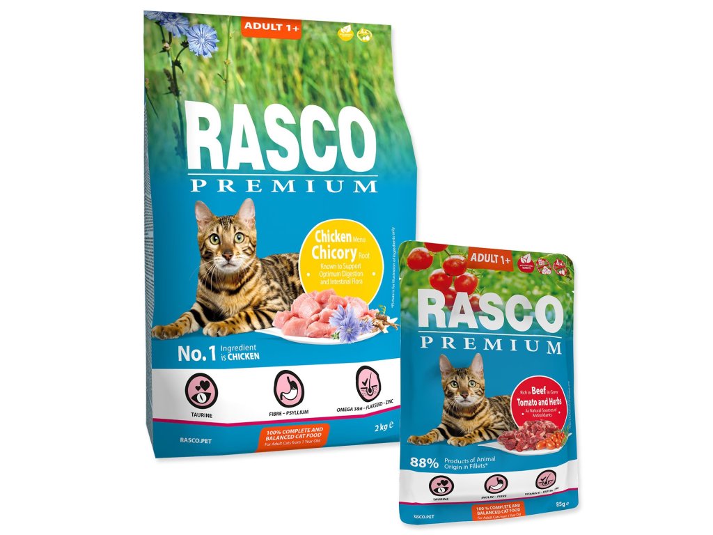 Krmivo Rasco Premium Adult kuře 2kg + 5 kapsiček ZDARMA