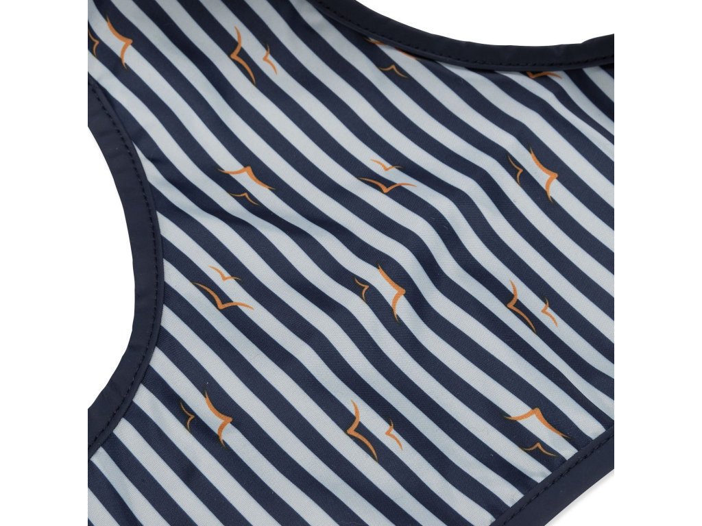 Pláštěnka s vyšším krkem. Nastavitelná kolem krku a přes břicho.