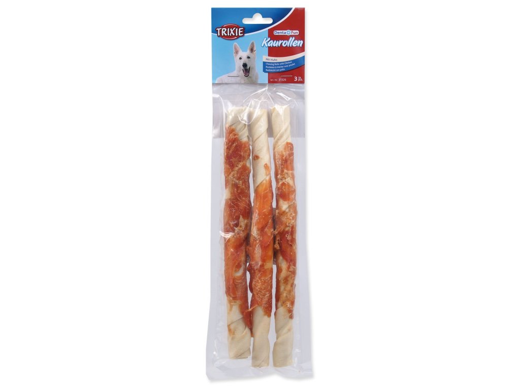 Pochoutka Trixie DentaFun buvolí kůže obalená kuřecím, rolky 28cm 3ks