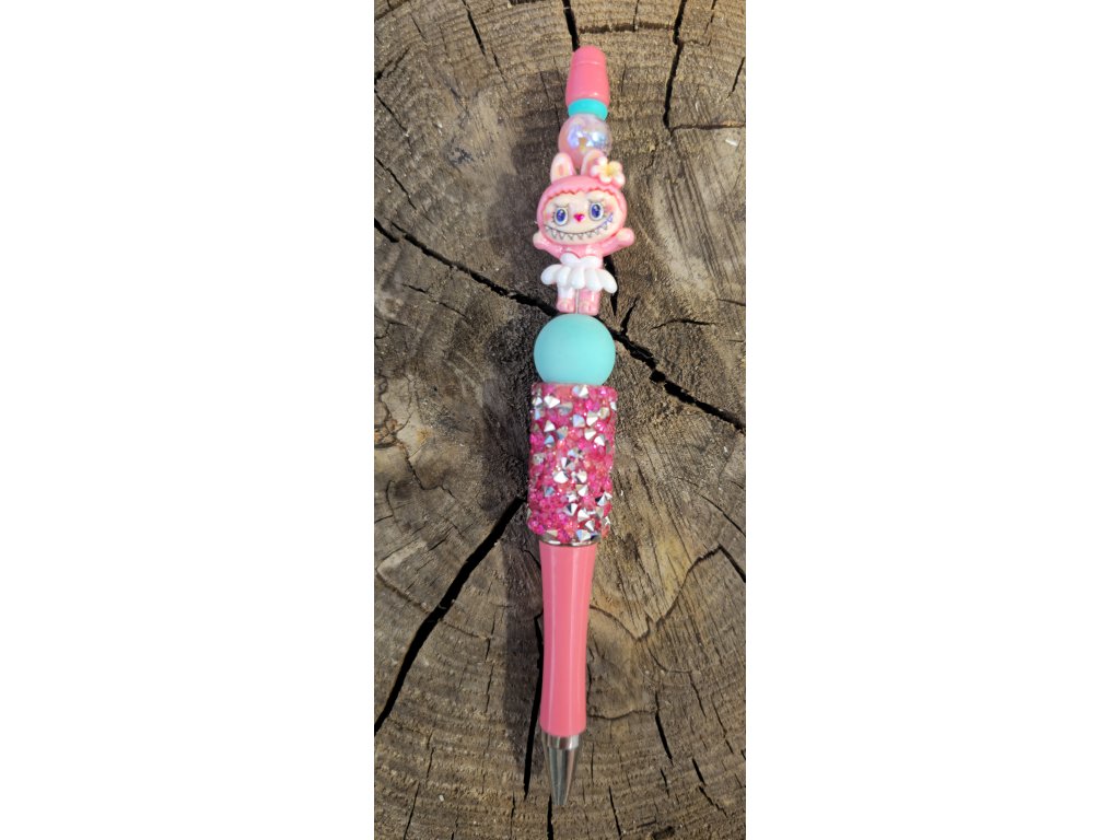Růžová energie, která rozsvítí každý poznámkový blok. Ručně vyráběná propiska Labubu kombinuje růžové tělo propisky s hladce píšící černou náplní a ruční ozdobou: hravá hlavička Labubu, tyrkysový korálek a třpytivý úchop s růžovými „drahokamy“. Je to drobnost, která promění běžné psaní v okamžik dobré nálady — v kanceláři, ve škole i na cestách.
